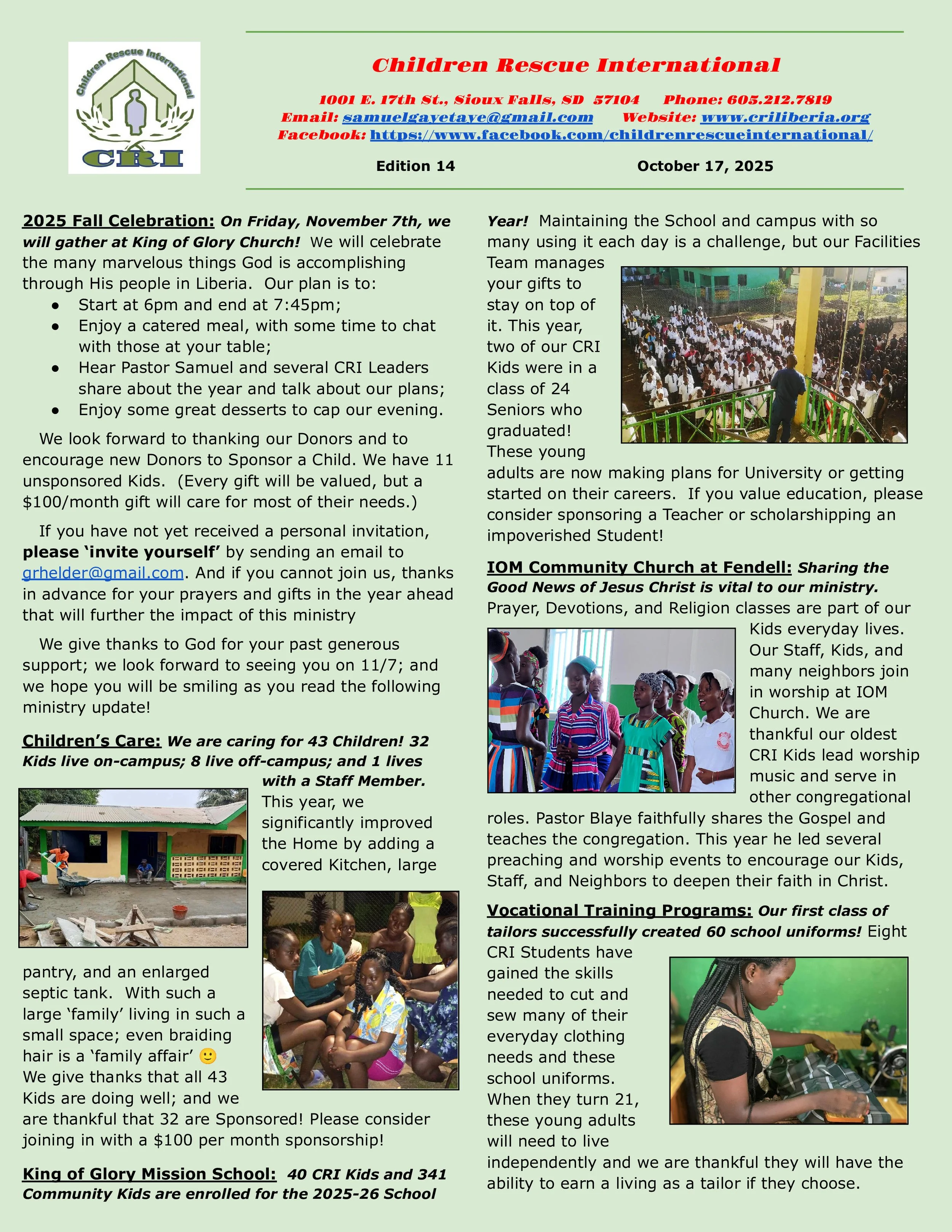 Newsletter - October 17, 2025 Gary HelderOctober 17, 2025Children Rescue InternationalComment Facebook0 Twitter LinkedIn0 Reddit Tumblr Pinterest0 0 Likes